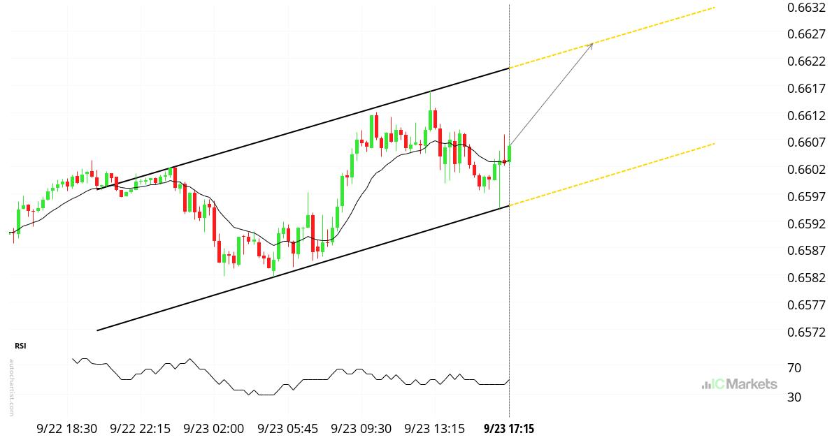 تم تحديد القناة الصاعدة في 9/23 17:15. لا يزال هذا النمط قيد التشكّل. توقعات بحركة سعرية صعودية محتملة نحو مستوى المقاومة 0.6624 خلال الـ 5 ساعات القادمة. تحذير من المخاطر: ينطوي التداول في الأوراق المالية على مخاطر كبيرة. قد تتقلب الأسعار وقد تفقد الأوراق المالية قيمتها بالكامل. قد تتجاوز الخسائر قيمة الودائع. هذه المنتجات معقدة […]