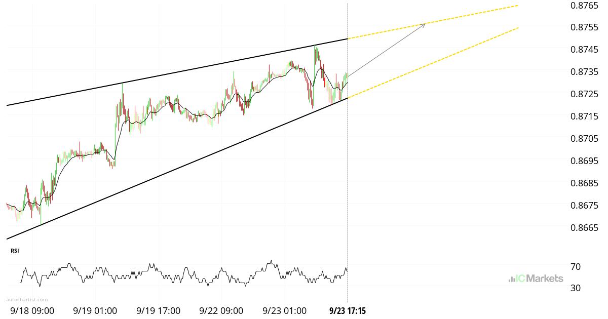 تم تحديد الوتد الصاعد في 9/23 17:15. لا يزال هذا النمط قيد التشكّل. توقعات بحركة سعرية صعودية محتملة نحو مستوى المقاومة 0.8755 خلال الـ 1 يوم القادمة. تحذير من المخاطر: ينطوي التداول في الأوراق المالية على مخاطر كبيرة. قد تتقلب الأسعار وقد تفقد الأوراق المالية قيمتها بالكامل. قد تتجاوز الخسائر قيمة الودائع. هذه المنتجات معقدة […]