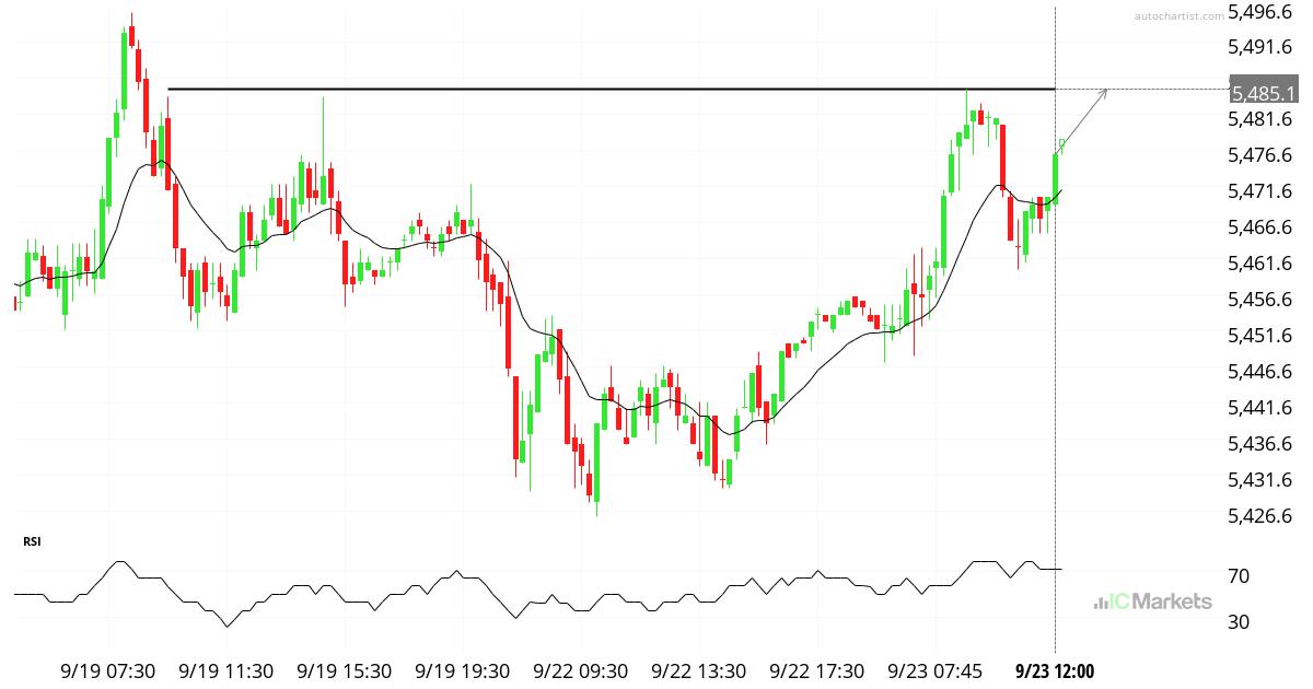 يقترب من مستوى المقاومة عند 5,485.1 المحدد في 9/23 12:00. لا يزال هذا النمط قيد التشكّل. توقعات بحركة سعرية صعودية محتملة نحو مستوى المقاومة 5,485.1 خلال الـ 6 ساعات القادمة. تحذير من المخاطر: ينطوي التداول في الأوراق المالية على مخاطر كبيرة. قد تتقلب الأسعار وقد تفقد الأوراق المالية قيمتها بالكامل. قد تتجاوز الخسائر قيمة الودائع. […]