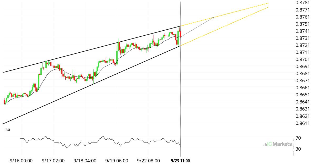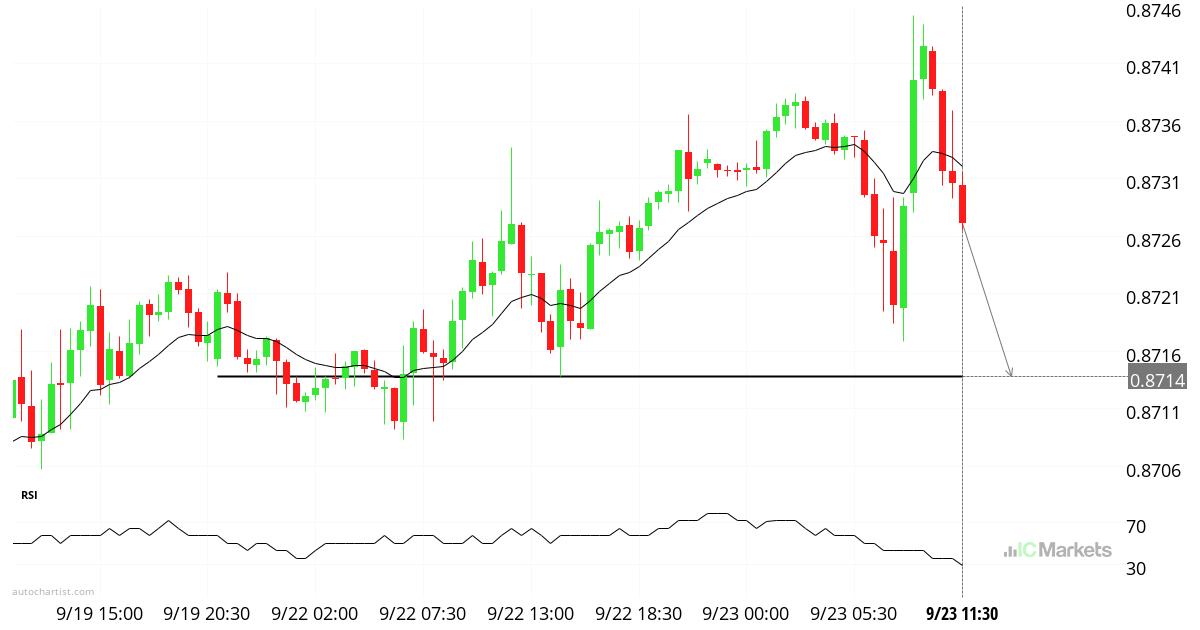 يقترب من مستوى الدعم عند 0.8714 المحدد في 9/23 11:30. لا يزال هذا النمط قيد التشكّل. توقعات بحركة سعرية هبوطية محتملة نحو مستوى الدعم 0.8714 خلال الـ 8 ساعات القادمة. تحذير من المخاطر: ينطوي التداول في الأوراق المالية على مخاطر كبيرة. قد تتقلب الأسعار وقد تفقد الأوراق المالية قيمتها بالكامل. قد تتجاوز الخسائر قيمة الودائع. […]