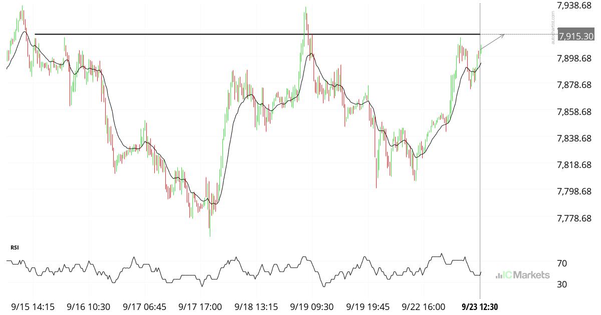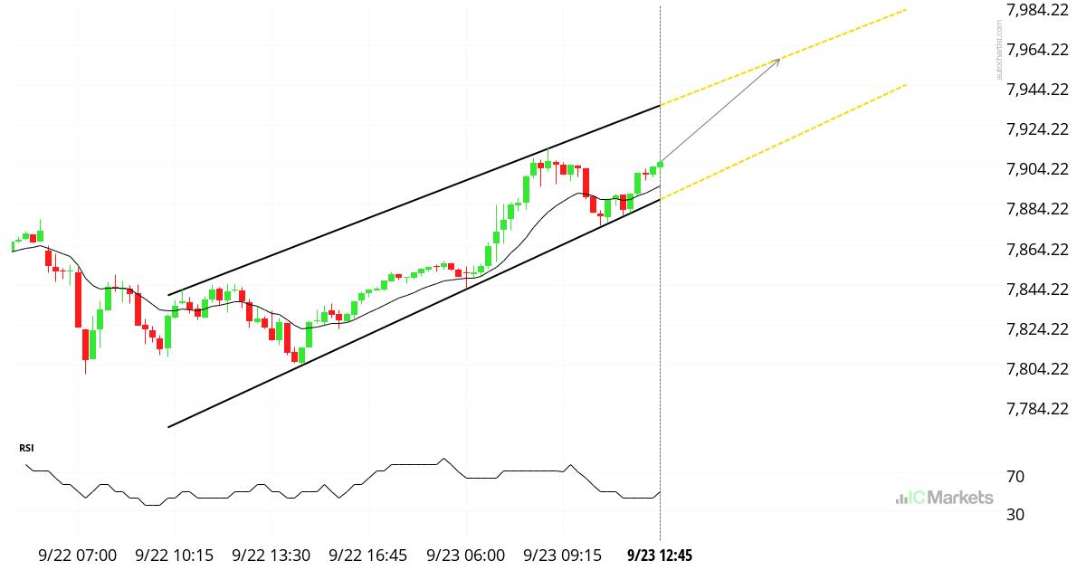 تم تحديد القناة الصاعدة في 9/23 12:45. لا يزال هذا النمط قيد التشكّل. توقعات بحركة سعرية صعودية محتملة نحو مستوى المقاومة 7,957.47 خلال الـ 4 ساعات القادمة. تحذير من المخاطر: ينطوي التداول في الأوراق المالية على مخاطر كبيرة. قد تتقلب الأسعار وقد تفقد الأوراق المالية قيمتها بالكامل. قد تتجاوز الخسائر قيمة الودائع. هذه المنتجات معقدة […]