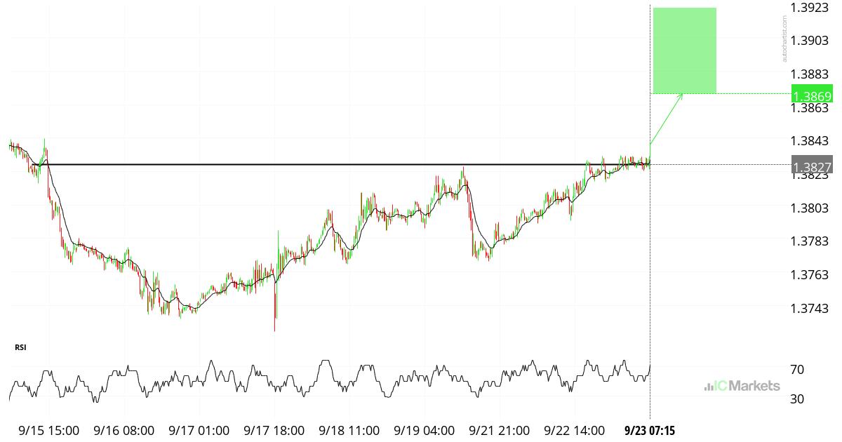 เบรคผ่านระดับ แนวต้าน ของ 1.3827 ที่ 9/23 07:15 คาดการณ์ว่ามีโอกาสเกิดการเคลื่อนตัวของราคาแบบ bullish ในช่วง 1 วัน ต่อจากนี้ไปยัง 1.3869 การซื้อขายหลักทรัพย์มีความเสี่ยงสูง ราคาหลักทรัพย์อาจมีความผันผวนและอาจสูญเสียมูลค่าได้ นักลงทุนอาจสูญเสียเงินลงทุนเกินกว่าที่ฝากไว้ ผลิตภัณฑ์เหล่านี้มีความซับซ้อนและต้องใช้ความรู้ความเข้าใจอย่างเหมาะสมก่อนการลงทุน