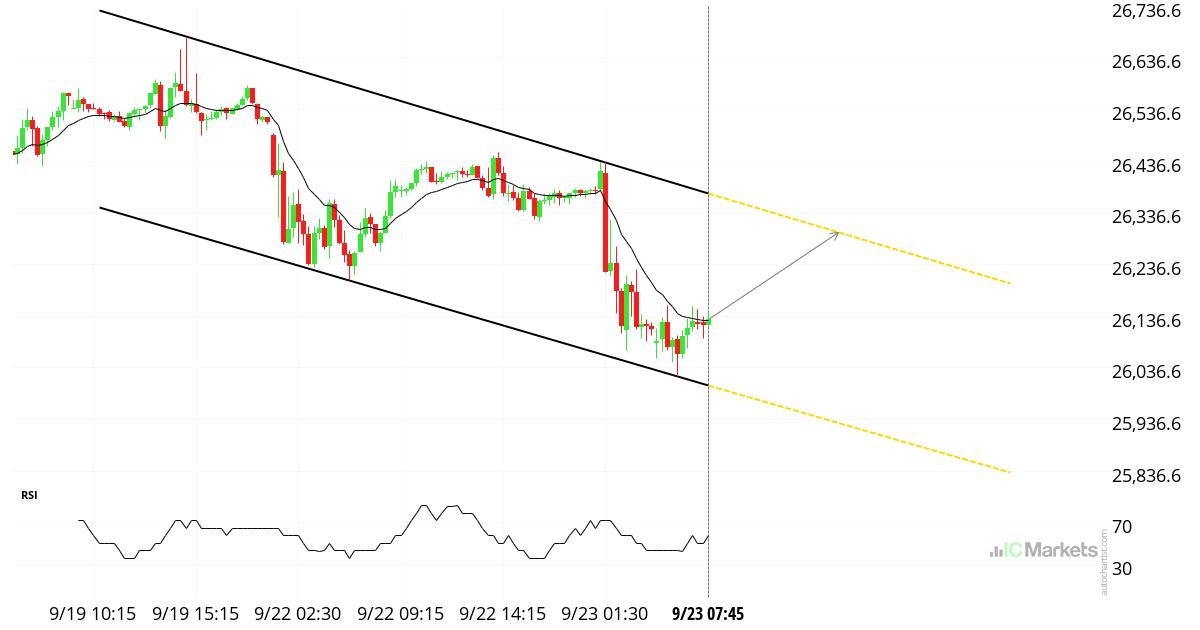 تم تحديد القناة الهابطة في 9/23 07:45. لا يزال هذا النمط قيد التشكّل. توقعات بحركة سعرية صعودية محتملة نحو مستوى المقاومة 26,298.5 خلال الـ 7 ساعات القادمة. تحذير من المخاطر: ينطوي التداول في الأوراق المالية على مخاطر كبيرة. قد تتقلب الأسعار وقد تفقد الأوراق المالية قيمتها بالكامل. قد تتجاوز الخسائر قيمة الودائع. هذه المنتجات معقدة […]