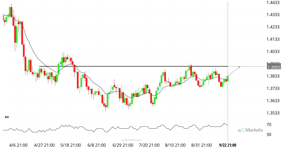 يقترب من مستوى المقاومة عند 1.3905 المحدد في 9/22 21:00. لا يزال هذا النمط قيد التشكّل. توقعات بحركة سعرية صعودية محتملة نحو مستوى المقاومة 1.3905 خلال الـ 25 أيام القادمة. تحذير من المخاطر: ينطوي التداول في الأوراق المالية على مخاطر كبيرة. قد تتقلب الأسعار وقد تفقد الأوراق المالية قيمتها بالكامل. قد تتجاوز الخسائر قيمة الودائع. […]