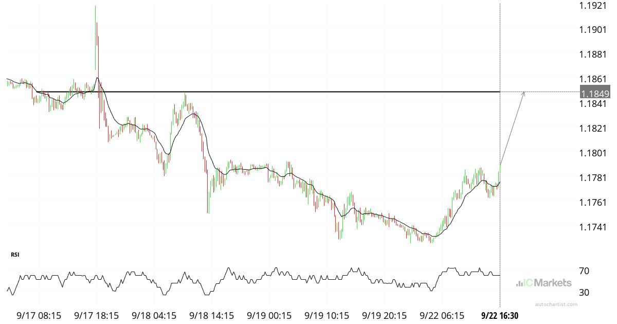 يقترب من مستوى المقاومة عند 1.1849 المحدد في 9/22 16:30. لا يزال هذا النمط قيد التشكّل. توقعات بحركة سعرية صعودية محتملة نحو مستوى المقاومة 1.1849 خلال الـ 19 ساعات القادمة. تحذير من المخاطر: ينطوي التداول في الأوراق المالية على مخاطر كبيرة. قد تتقلب الأسعار وقد تفقد الأوراق المالية قيمتها بالكامل. قد تتجاوز الخسائر قيمة الودائع. […]