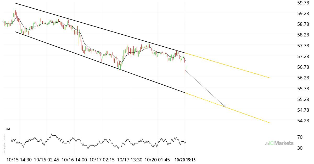 Channel Down identified at 10/20 13:15. This pattern is still in the process of forming. Possible bearish price movement towards the support 54.86 within the next 21 hours. *** Risk Warning: Trading in securities involves significant risk. Prices may fluctuate and securities may become valueless. Losses may exceed deposits. These products are complex and require […]