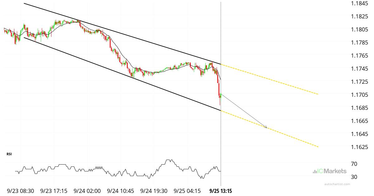 تم تحديد القناة الهابطة في 9/25 13:15. لا يزال هذا النمط قيد التشكّل. توقعات بحركة سعرية هبوطية محتملة نحو مستوى الدعم 1.1653 خلال الـ 15 ساعات القادمة. تحذير من المخاطر: ينطوي التداول في الأوراق المالية على مخاطر كبيرة. قد تتقلب الأسعار وقد تفقد الأوراق المالية قيمتها بالكامل. قد تتجاوز الخسائر قيمة الودائع. هذه المنتجات معقدة […]