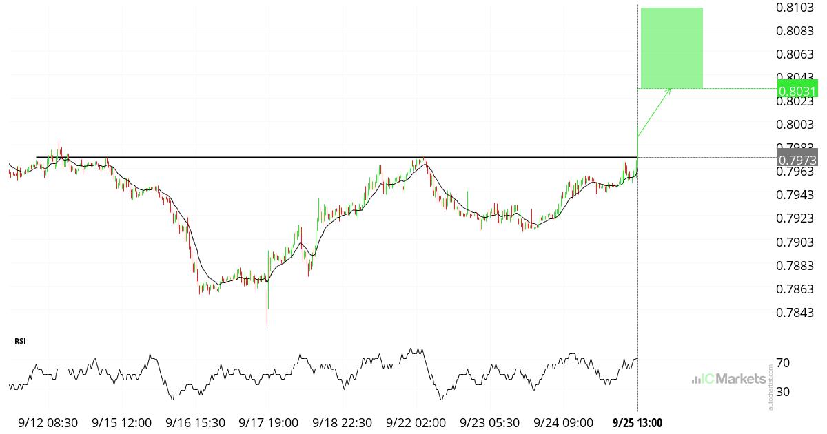 اخترق السعر مستوى المقاومة عند 0.7973 في 9/25 13:00. توقعات بحركة سعرية صعودية محتملة خلال الـ 2 أيام القادمة نحو 0.8031. تحذير من المخاطر: ينطوي التداول في الأوراق المالية على مخاطر كبيرة. قد تتقلب الأسعار وقد تفقد الأوراق المالية قيمتها بالكامل. قد تتجاوز الخسائر قيمة الودائع. هذه المنتجات معقدة وتتطلب معرفة مناسبة.