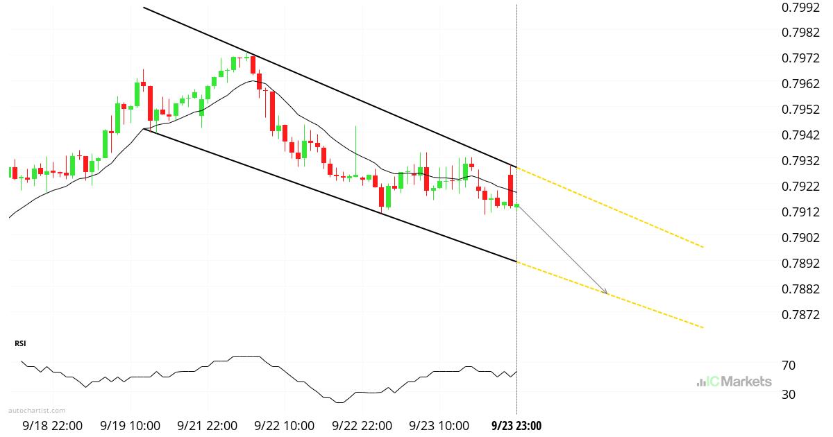 تم تحديد القناة الهابطة في 9/23 23:00. لا يزال هذا النمط قيد التشكّل. توقعات بحركة سعرية هبوطية محتملة نحو مستوى الدعم 0.7879 خلال الـ 17 ساعات القادمة. تحذير من المخاطر: ينطوي التداول في الأوراق المالية على مخاطر كبيرة. قد تتقلب الأسعار وقد تفقد الأوراق المالية قيمتها بالكامل. قد تتجاوز الخسائر قيمة الودائع. هذه المنتجات معقدة […]