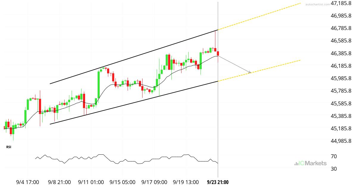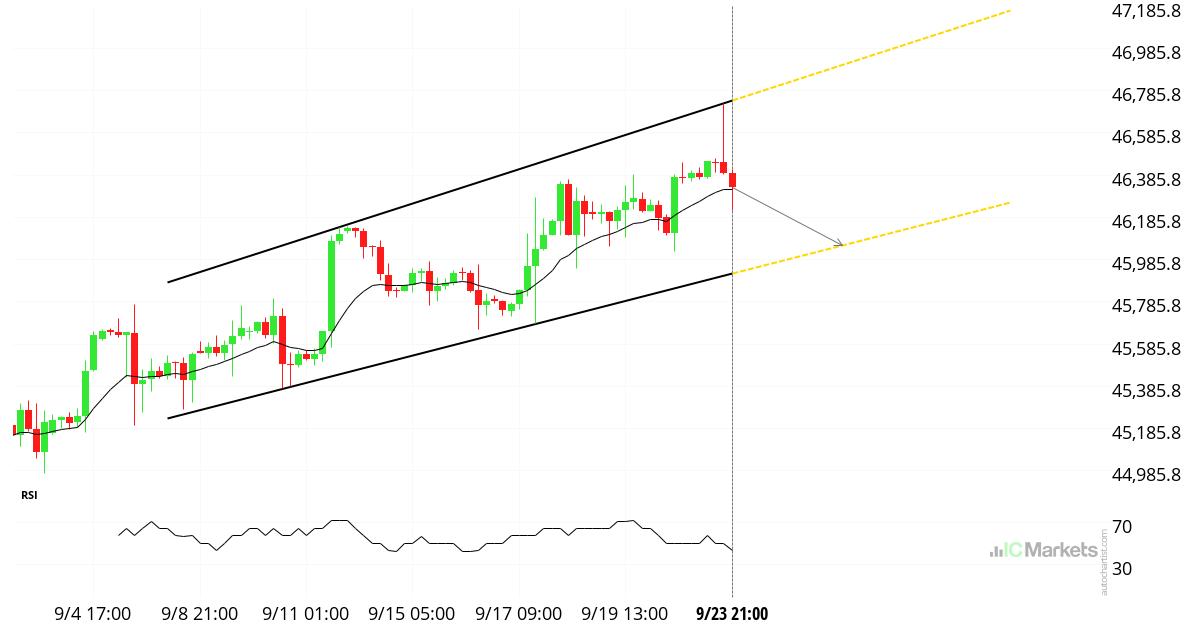 US Wall Street 30 Index – نموذج الرسم البياني – القناة الصاعدة