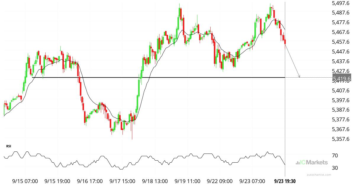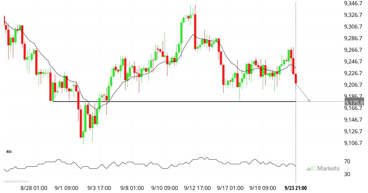 يقترب من مستوى الدعم عند 9,175.9 المحدد في 9/23 21:00. لا يزال هذا النمط قيد التشكّل. توقعات بحركة سعرية هبوطية محتملة نحو مستوى الدعم 9,175.9 خلال الـ 4 أيام القادمة. تحذير من المخاطر: ينطوي التداول في الأوراق المالية على مخاطر كبيرة. قد تتقلب الأسعار وقد تفقد الأوراق المالية قيمتها بالكامل. قد تتجاوز الخسائر قيمة الودائع. […]