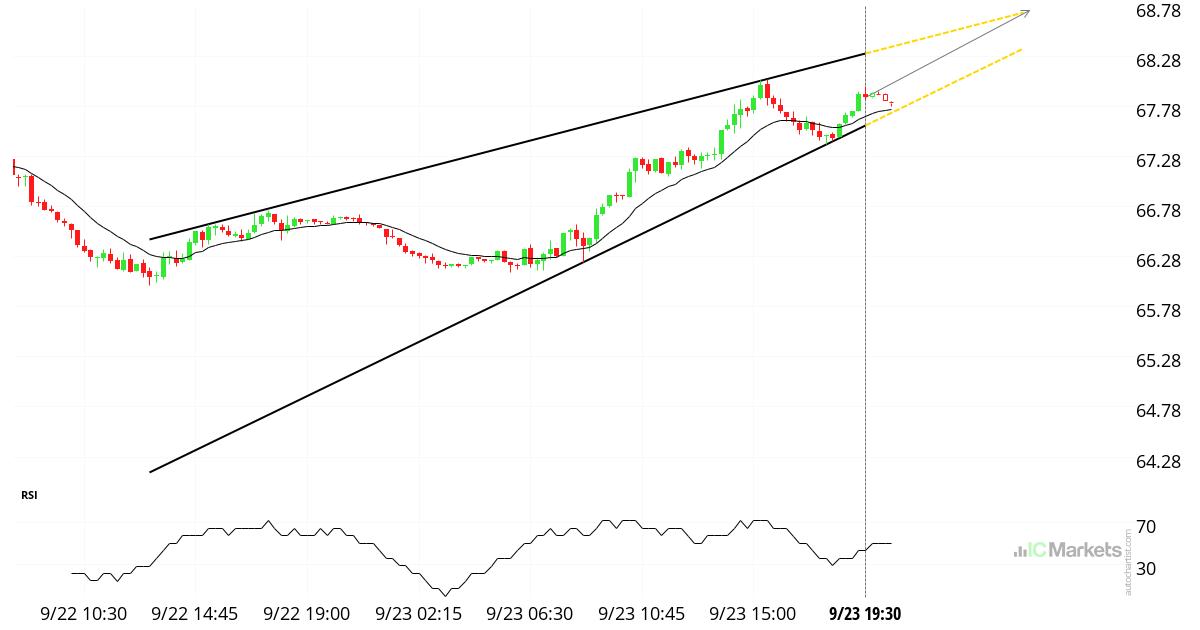 تم تحديد الوتد الصاعد في 9/23 19:30. لا يزال هذا النمط قيد التشكّل. توقعات بحركة سعرية صعودية محتملة نحو مستوى المقاومة 68.73 خلال الـ 7 ساعات القادمة. تحذير من المخاطر: ينطوي التداول في الأوراق المالية على مخاطر كبيرة. قد تتقلب الأسعار وقد تفقد الأوراق المالية قيمتها بالكامل. قد تتجاوز الخسائر قيمة الودائع. هذه المنتجات معقدة […]