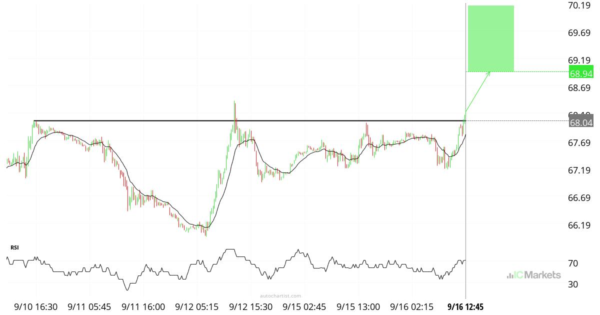 اخترق السعر مستوى المقاومة عند 68.05 في 9/16 12:45. توقعات بحركة سعرية صعودية محتملة خلال الـ 20 ساعات القادمة نحو 68.94. تحذير من المخاطر: ينطوي التداول في الأوراق المالية على مخاطر كبيرة. قد تتقلب الأسعار وقد تفقد الأوراق المالية قيمتها بالكامل. قد تتجاوز الخسائر قيمة الودائع. هذه المنتجات معقدة وتتطلب معرفة مناسبة.