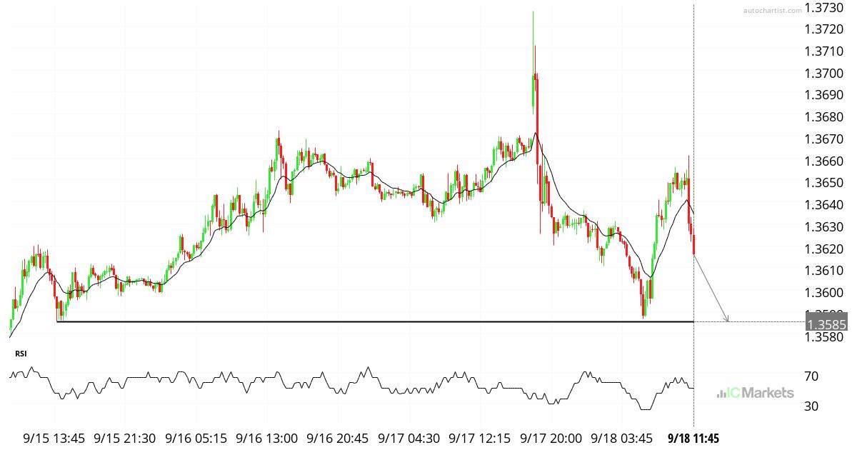 يقترب من مستوى الدعم عند 1.3585 المحدد في 9/18 11:45. لا يزال هذا النمط قيد التشكّل. توقعات بحركة سعرية هبوطية محتملة نحو مستوى الدعم 1.3585 خلال الـ 16 ساعات القادمة. تحذير من المخاطر: ينطوي التداول في الأوراق المالية على مخاطر كبيرة. قد تتقلب الأسعار وقد تفقد الأوراق المالية قيمتها بالكامل. قد تتجاوز الخسائر قيمة الودائع. […]