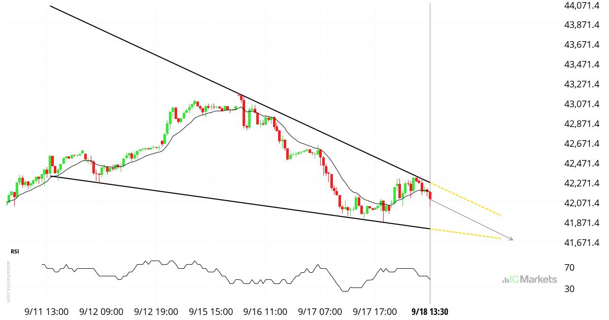 تم تحديد الوتد الهابط في 9/18 13:30. لا يزال هذا النمط قيد التشكّل. توقعات بحركة سعرية هبوطية محتملة نحو مستوى الدعم 41,672.7 خلال الـ 19 ساعات القادمة. تحذير من المخاطر: ينطوي التداول في الأوراق المالية على مخاطر كبيرة. قد تتقلب الأسعار وقد تفقد الأوراق المالية قيمتها بالكامل. قد تتجاوز الخسائر قيمة الودائع. هذه المنتجات معقدة […]