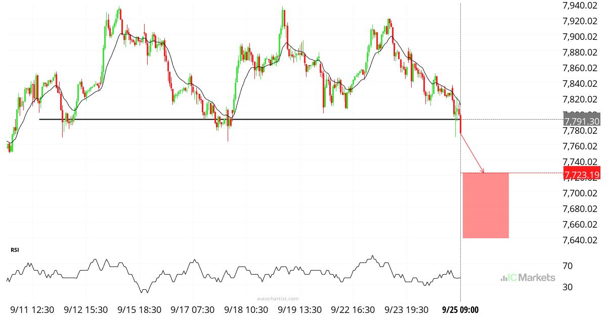 اخترق السعر مستوى الدعم عند 7,791.30 في 9/25 09:00. توقعات بحركة سعرية هبوطية محتملة خلال الـ 1 يوم القادمة نحو 7,723.19. تحذير من المخاطر: ينطوي التداول في الأوراق المالية على مخاطر كبيرة. قد تتقلب الأسعار وقد تفقد الأوراق المالية قيمتها بالكامل. قد تتجاوز الخسائر قيمة الودائع. هذه المنتجات معقدة وتتطلب معرفة مناسبة.