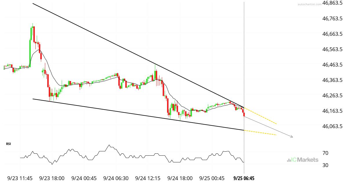 US Wall Street 30 Index – รูปแบบกราฟ – จั่วแบบลง