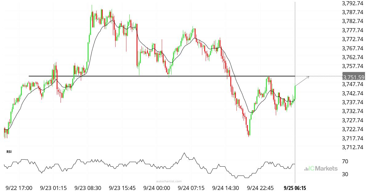 يقترب من مستوى المقاومة عند 3,751.59 المحدد في 9/25 06:15. لا يزال هذا النمط قيد التشكّل. توقعات بحركة سعرية صعودية محتملة نحو مستوى المقاومة 3,751.59 خلال الـ 13 ساعات القادمة. تحذير من المخاطر: ينطوي التداول في الأوراق المالية على مخاطر كبيرة. قد تتقلب الأسعار وقد تفقد الأوراق المالية قيمتها بالكامل. قد تتجاوز الخسائر قيمة الودائع. […]