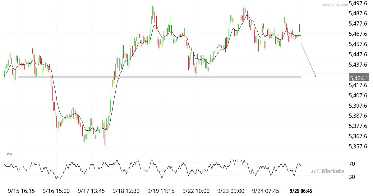 يقترب من مستوى الدعم عند 5,424.1 المحدد في 9/25 06:45. لا يزال هذا النمط قيد التشكّل. توقعات بحركة سعرية هبوطية محتملة نحو مستوى الدعم 5,424.1 خلال الـ 1 يوم القادمة. تحذير من المخاطر: ينطوي التداول في الأوراق المالية على مخاطر كبيرة. قد تتقلب الأسعار وقد تفقد الأوراق المالية قيمتها بالكامل. قد تتجاوز الخسائر قيمة الودائع. […]