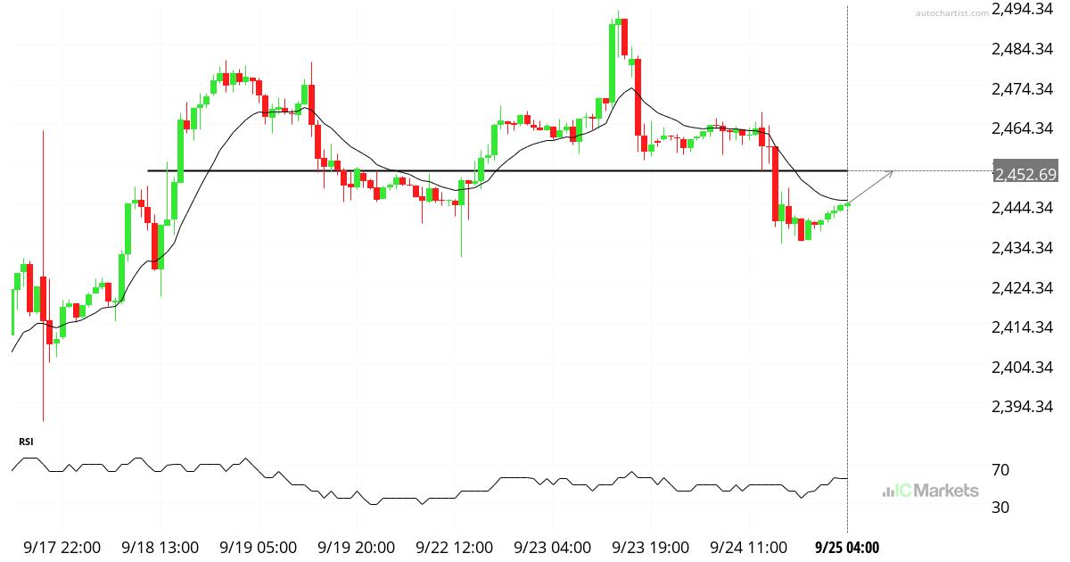 يقترب من مستوى المقاومة عند 2,452.69 المحدد في 9/25 04:00. لا يزال هذا النمط قيد التشكّل. توقعات بحركة سعرية صعودية محتملة نحو مستوى المقاومة 2,452.69 خلال الـ 1 يوم القادمة. تحذير من المخاطر: ينطوي التداول في الأوراق المالية على مخاطر كبيرة. قد تتقلب الأسعار وقد تفقد الأوراق المالية قيمتها بالكامل. قد تتجاوز الخسائر قيمة الودائع. […]