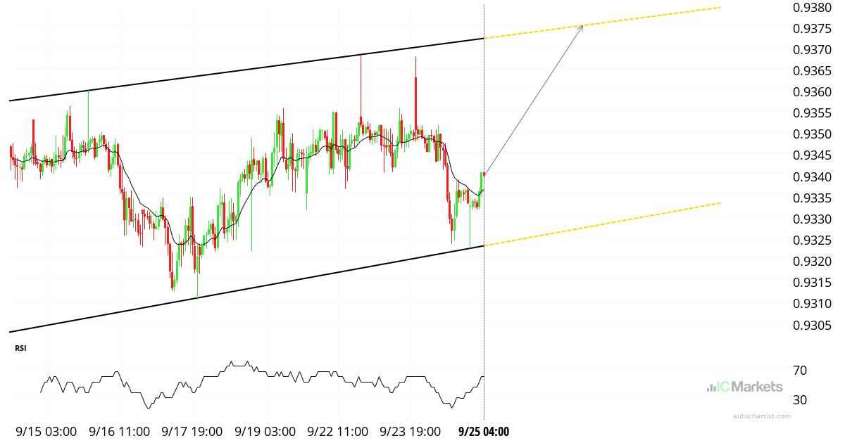 تم تحديد القناة الصاعدة في 9/25 04:00. لا يزال هذا النمط قيد التشكّل. توقعات بحركة سعرية صعودية محتملة نحو مستوى المقاومة 0.9375 خلال الـ 2 أيام القادمة. تحذير من المخاطر: ينطوي التداول في الأوراق المالية على مخاطر كبيرة. قد تتقلب الأسعار وقد تفقد الأوراق المالية قيمتها بالكامل. قد تتجاوز الخسائر قيمة الودائع. هذه المنتجات معقدة […]