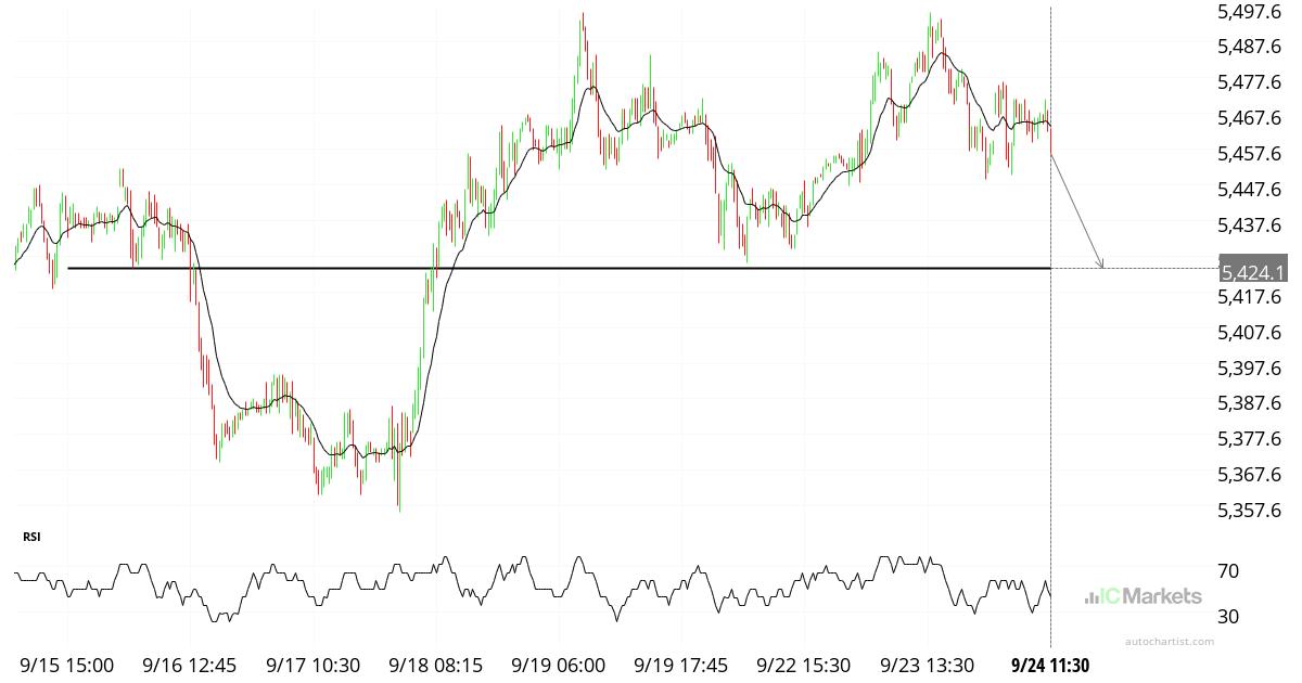 يقترب من مستوى الدعم عند 5,424.1 المحدد في 9/24 11:30. لا يزال هذا النمط قيد التشكّل. توقعات بحركة سعرية هبوطية محتملة نحو مستوى الدعم 5,424.1 خلال الـ 23 ساعات القادمة. تحذير من المخاطر: ينطوي التداول في الأوراق المالية على مخاطر كبيرة. قد تتقلب الأسعار وقد تفقد الأوراق المالية قيمتها بالكامل. قد تتجاوز الخسائر قيمة الودائع. […]