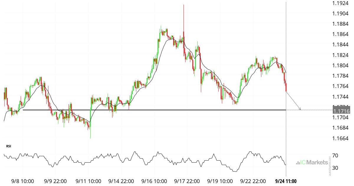 يقترب من مستوى الدعم عند 1.1716 المحدد في 9/24 11:00. لا يزال هذا النمط قيد التشكّل. توقعات بحركة سعرية هبوطية محتملة نحو مستوى الدعم 1.1716 خلال الـ 2 أيام القادمة. تحذير من المخاطر: ينطوي التداول في الأوراق المالية على مخاطر كبيرة. قد تتقلب الأسعار وقد تفقد الأوراق المالية قيمتها بالكامل. قد تتجاوز الخسائر قيمة الودائع. […]
