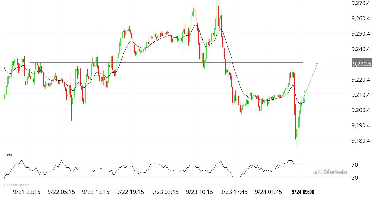 يقترب من مستوى المقاومة عند 9,230.5 المحدد في 9/24 09:00. لا يزال هذا النمط قيد التشكّل. توقعات بحركة سعرية صعودية محتملة نحو مستوى المقاومة 9,230.5 خلال الـ 13 ساعات القادمة. تحذير من المخاطر: ينطوي التداول في الأوراق المالية على مخاطر كبيرة. قد تتقلب الأسعار وقد تفقد الأوراق المالية قيمتها بالكامل. قد تتجاوز الخسائر قيمة الودائع. […]
