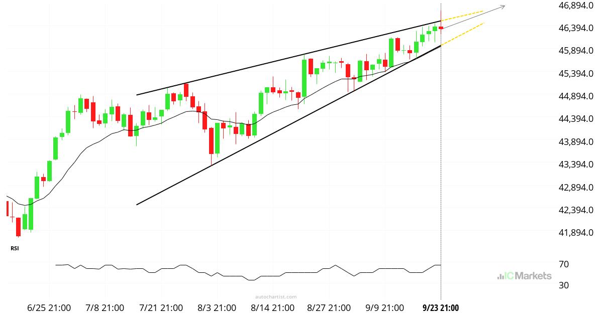 US Wall Street 30 Index – รูปแบบกราฟ – จั่วแบบขึ้น