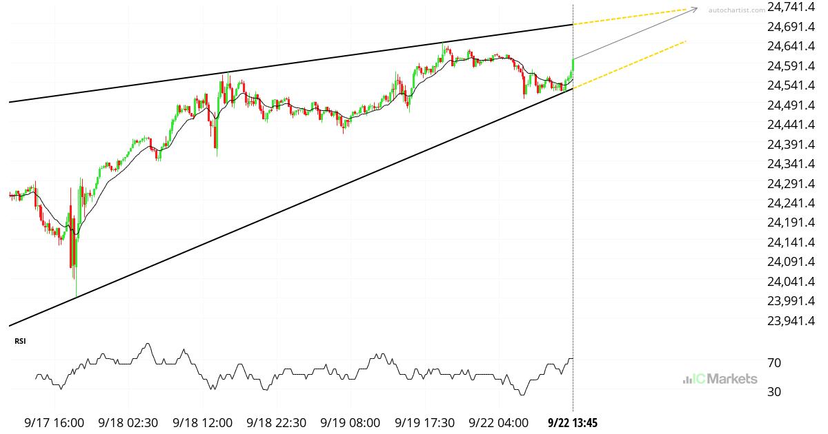 تم تحديد القناة الهابطة في 9/22 12:00. لا يزال هذا النمط قيد التشكّل. توقعات بحركة سعرية صعودية محتملة نحو مستوى المقاومة 23,579.5 خلال الـ 8 ساعات القادمة. تحذير من المخاطر: ينطوي التداول في الأوراق المالية على مخاطر كبيرة. قد تتقلب الأسعار وقد تفقد الأوراق المالية قيمتها بالكامل. قد تتجاوز الخسائر قيمة الودائع. هذه المنتجات معقدة […]