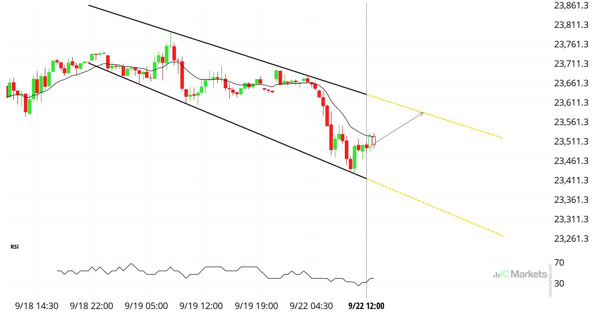 ช่องแบบลง ถูกระบุที่ 9/22 12:00 รูปแบบนี้กำลังอยู่ระหว่างกระบวนการสร้างตัว การเคลื่อนไหวของราคาแบบกระทิงที่อาจเกิดขึ้นได้ไปยังแนวต้าน 23,579.5 ภายใน 8 ชั่วโมง ถัดไป การซื้อขายหลักทรัพย์มีความเสี่ยงสูง ราคาหลักทรัพย์อาจมีความผันผวนและอาจสูญเสียมูลค่าได้ นักลงทุนอาจสูญเสียเงินลงทุนเกินกว่าที่ฝากไว้ ผลิตภัณฑ์เหล่านี้มีความซับซ้อนและต้องใช้ความรู้ความเข้าใจอย่างเหมาะสมก่อนการลงทุน