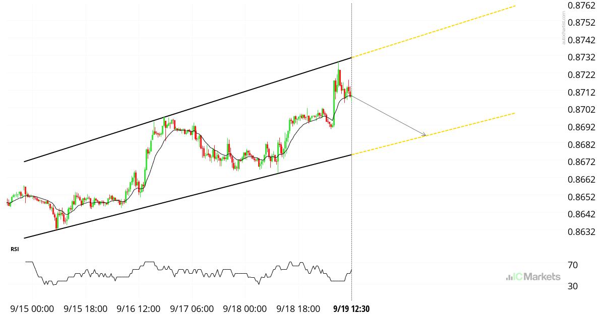 ช่องแบบขึ้น ถูกระบุที่ 9/19 12:30 รูปแบบนี้กำลังอยู่ระหว่างกระบวนการสร้างตัว การเคลื่อนไหวของราคาแบบหมีไปยังแนวรับ 0.8686 ภายใน 1 วัน ถัดไป การซื้อขายหลักทรัพย์มีความเสี่ยงสูง ราคาหลักทรัพย์อาจมีความผันผวนและอาจสูญเสียมูลค่าได้ นักลงทุนอาจสูญเสียเงินลงทุนเกินกว่าที่ฝากไว้ ผลิตภัณฑ์เหล่านี้มีความซับซ้อนและต้องใช้ความรู้ความเข้าใจอย่างเหมาะสมก่อนการลงทุน